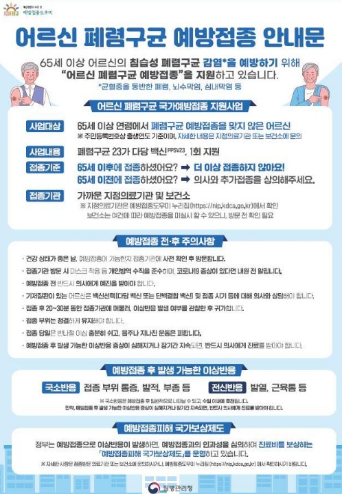 경기도 65세 이상, 폐렴구균 예방접종하세요